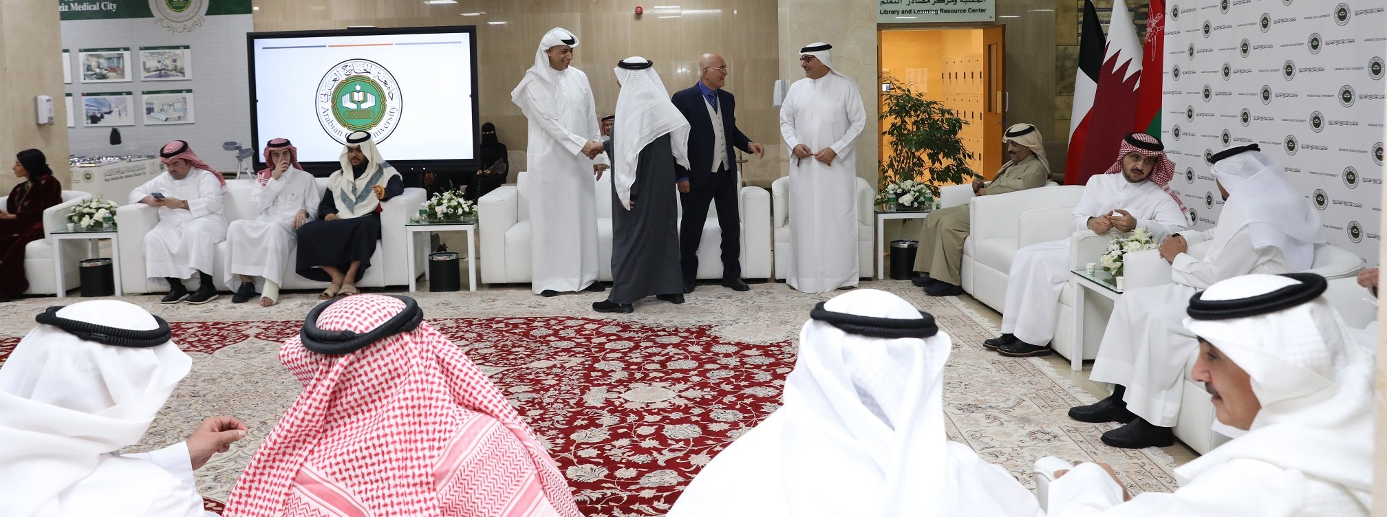 استقبل معالي رئيس جامعة الخليج العربي، الدكتور سعد بن سعود آل فهيد، جمعًا من أعضاء السلك الدبلوماسي وسلك التعليم العالي، ورجال الأعمال، والوجهاء، والأطباء، والأكاديميين، وعدد من الشخصيات المجتمعية البارزة من مختلف القطاعات، بالإضافة إلى عدد من الطلبة والخريجين من مختلف التخصصات، في مجلس رمضاني نظمته الجامعة مساء أمس، ليتحاور خلاله الضيوف في مختلف القضايا الأكاديمية والاجتماعية والثقافية.