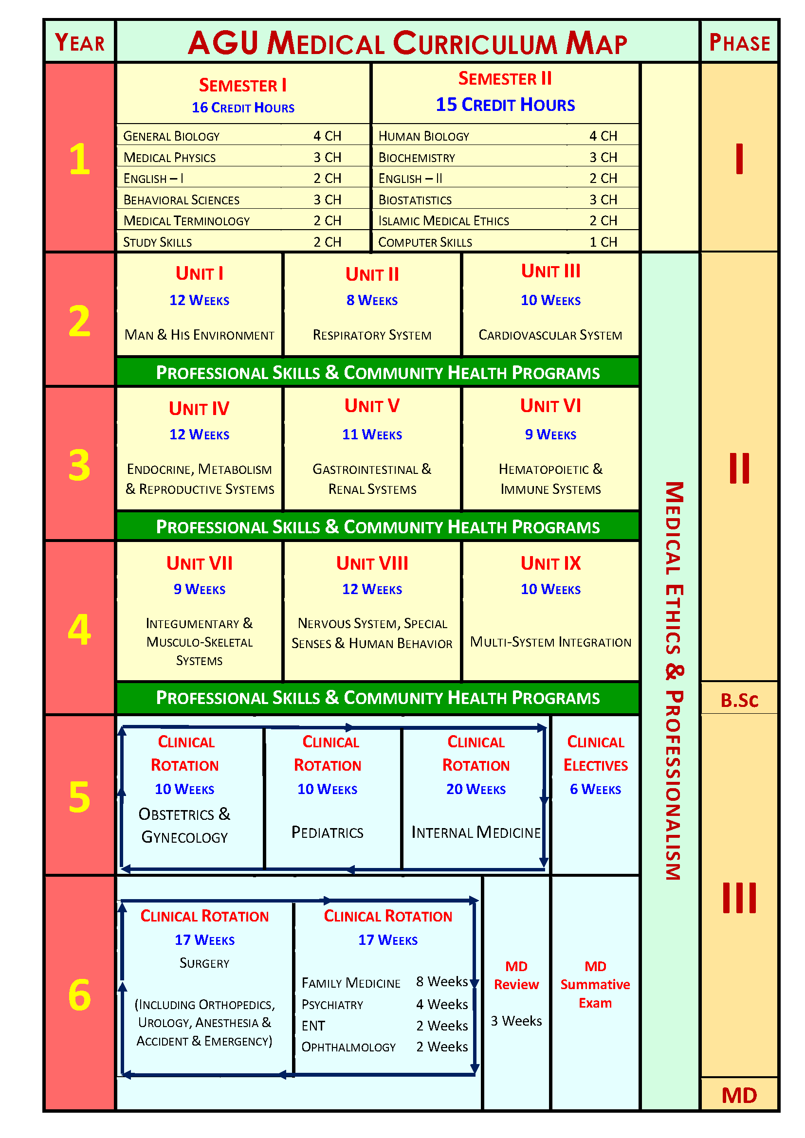 خارطة المنهج لبرنامج "دكتور في الطب" هي كالتالي: