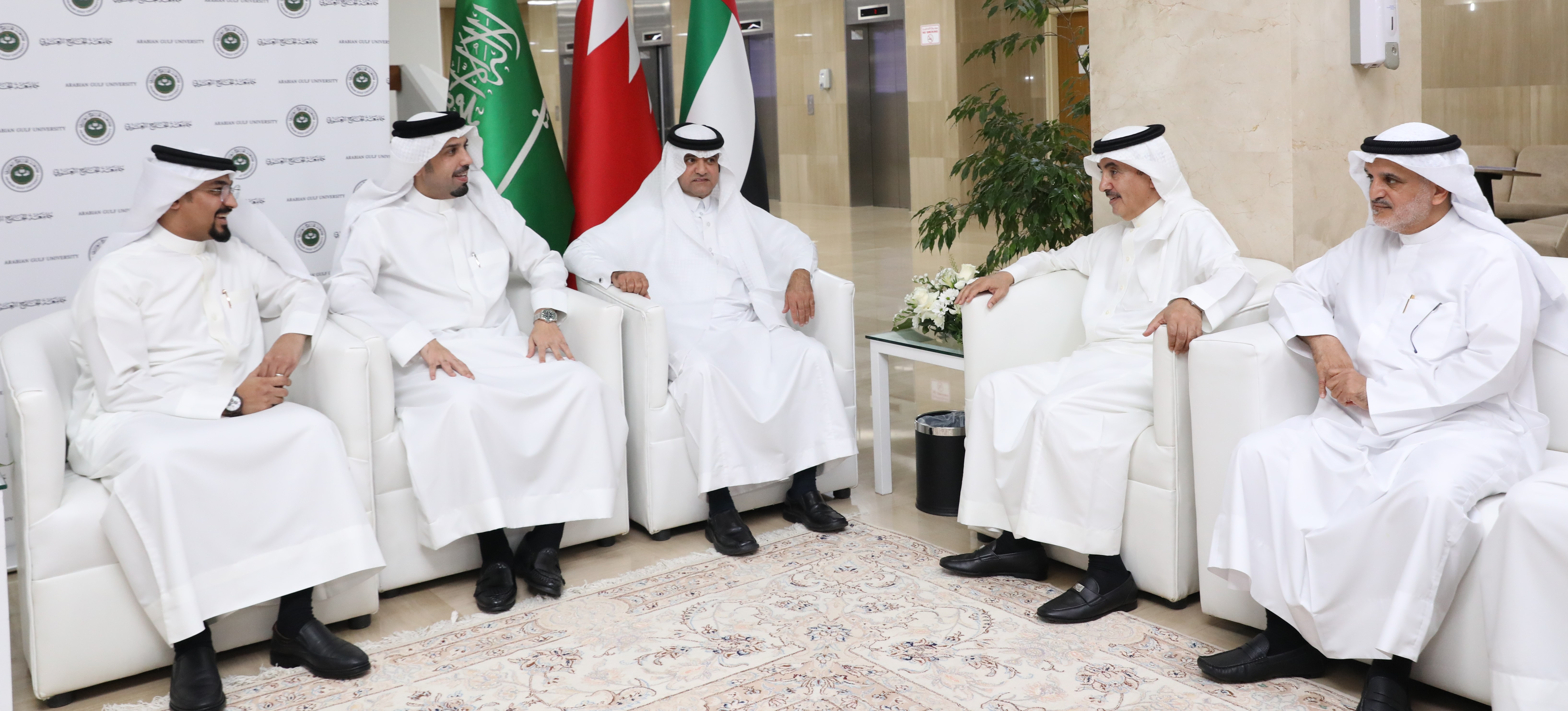 His Excellency Dr Saad bin Saud Al Fuhaid, President of the Arabian Gulf University (AGU), recently received a group of members from the diplomatic corps, higher education sector, business community, dignitaries, doctors, academics and several prominent community figures from various fields, along with a number of students and alumni from diverse disciplines, during the University’s annual Ramadan majlis, which was organised by the University yesterday, providing a platform for the guests to engage in discussions on various academic, social and cultural issues.