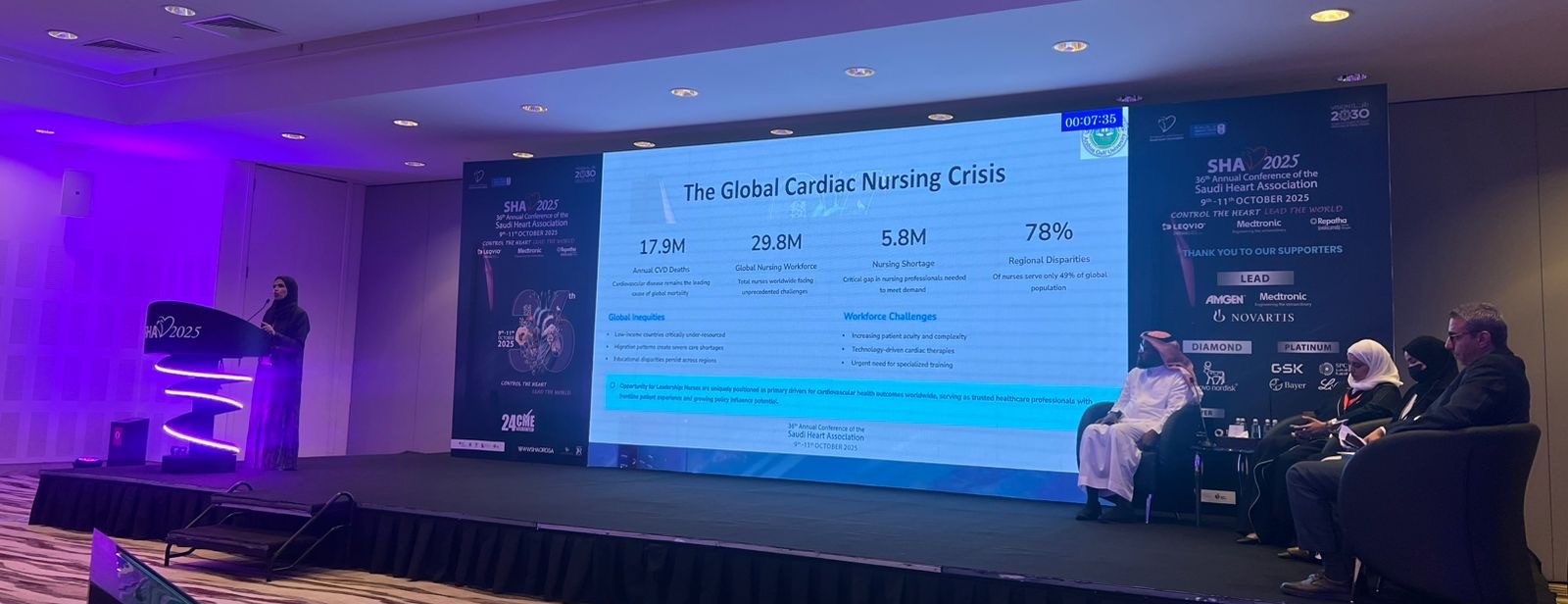 Dr Hawazin Rawas delivered a keynote address for a dialogue session titled "A Voice to Lead: Cardiac Nursing in Shaping World Health." She discussed the pivotal role of nurses in promoting global cardiac health and the importance of empowering nursing leaders to participate in health policymaking and to implement evidence-based practices in cardiac care.