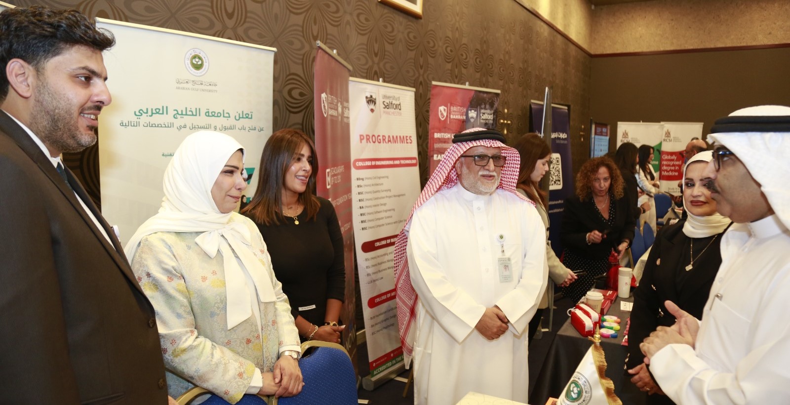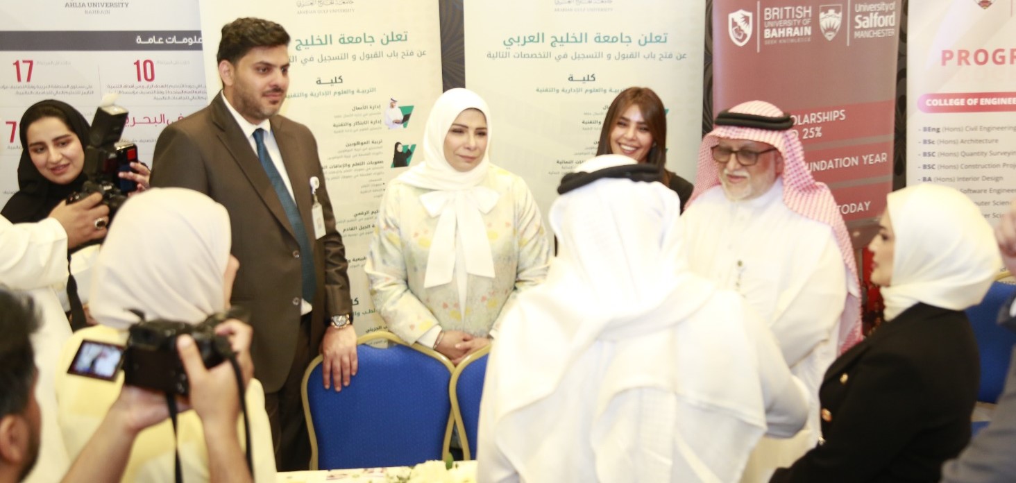 The Arabian Gulf University (AGU) took part in the Al Ayam University Exhibition, which commenced on Tuesday morning, in the presence of His Excellency Dr Mohammed bin Mubarak Juma, Minister of Education and Chairman of the Higher Education Council, and Dr Diana Abdulkarim Al Jahrami, Secretary General of the Higher Education Council.