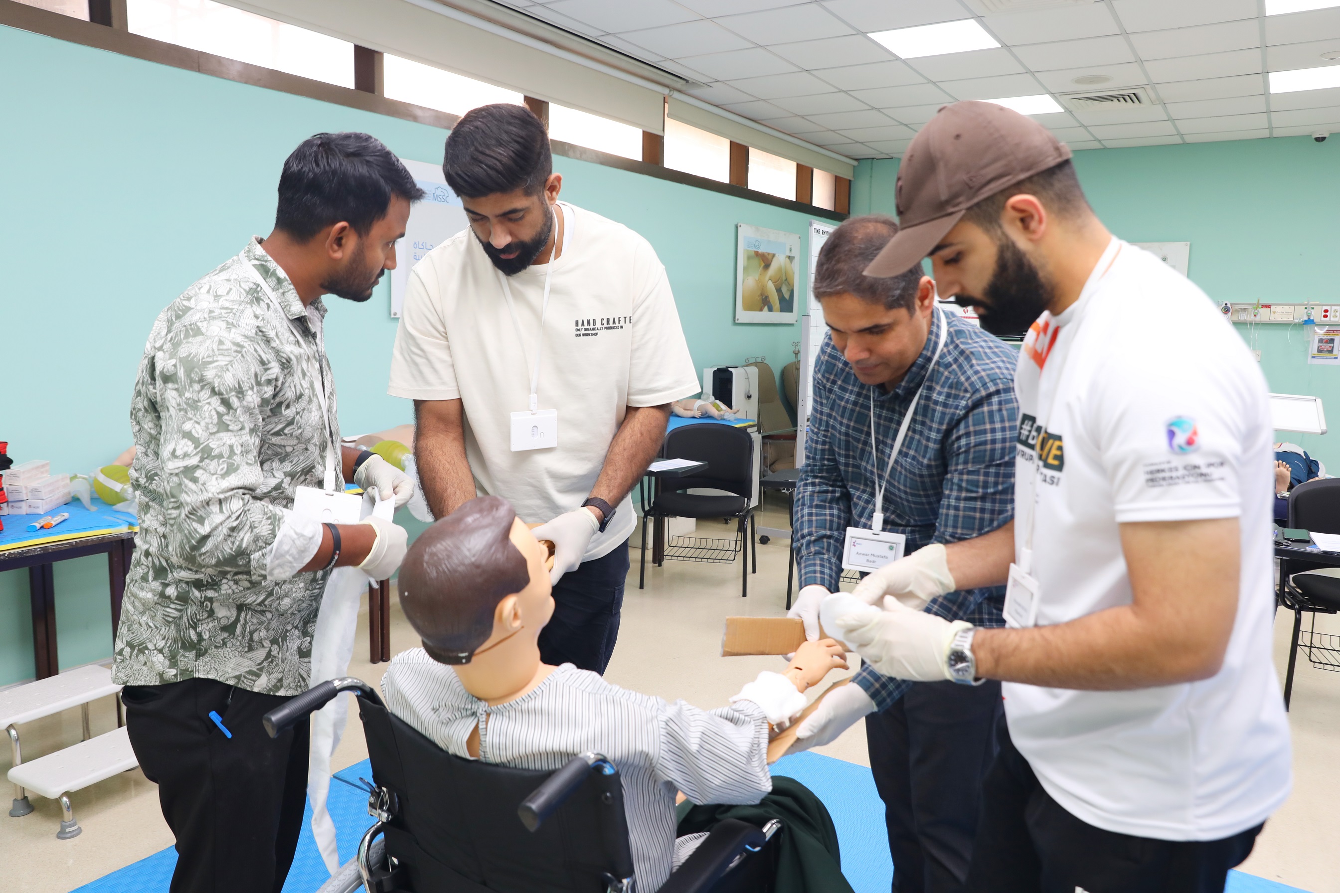 Each intensive training session, lasting between four to five hours, was led by American Heart Association certified instructors from the Medical Skills and Simulation Centre, namely the Paramedic Ruel Gutierrez and Dr Ibrahim Abdulkarim. They delivered a practical training course focused on essential first aid skills, enhancing participants’ readiness to handle various emergency situations with competence.